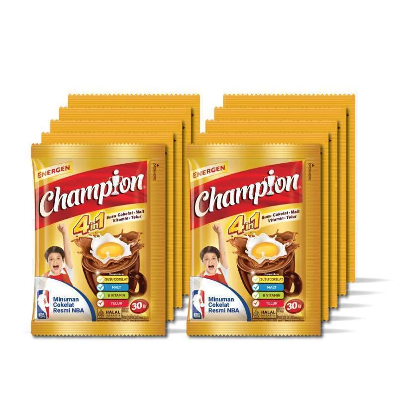 Energen Champion adalah minuman sereal bergizi yang praktis dan mengenyangkan, cocok untuk sarapan maupun pengganjal lapar kapan saja. Diperkaya dengan susu, sereal, telur, serta vitamin dan mineral lengkap, Energen Champion memberikan energi ekstra untuk aktivitas sehari-hari. Rasanya enak, mudah diseduh, dan aman dikonsumsi oleh seluruh anggota keluarga.