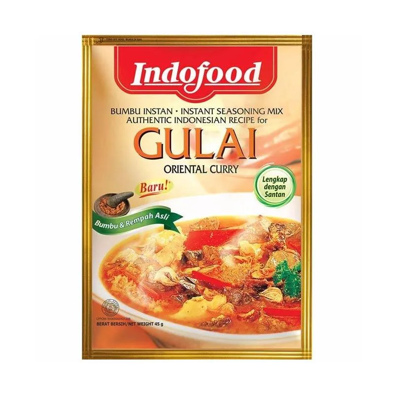 Indofood Bumbu Gulai merupakan bumbu instan siap pakai dengan perpaduan rempah pilihan seperti kunyit, ketumbar, dan serai, menghasilkan cita rasa gulai yang gurih dan harum. Cocok untuk olahan ayam, daging, ikan, maupun masakan rumahan lainnya.