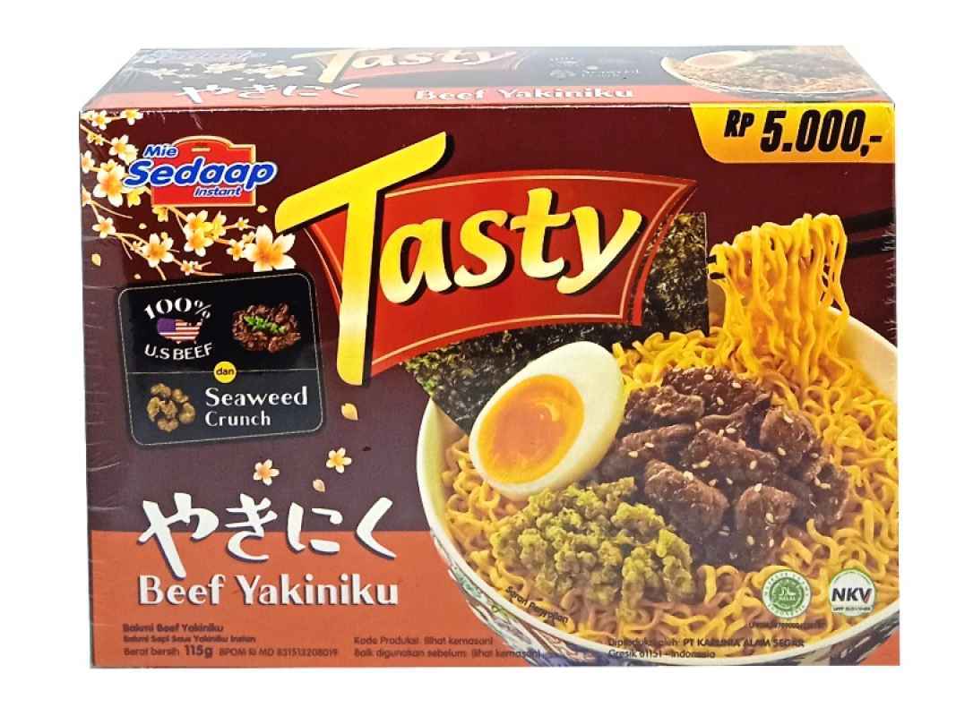 Mie Sedaap Tasty Bakmie Yakiniku menghadirkan sensasi bakmie premium dengan cita rasa daging yakiniku khas Jepang. Mie-nya tebal dan kenyal, bumbunya gurih manis, dan aromanya menggugah selera!