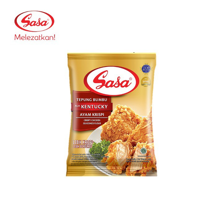 Sasa Tepung Kentucky merupakan tepung bumbu siap pakai dengan campuran rempah pilihan untuk menghasilkan ayam goreng renyah di luar, lembut di dalam, dan bercita rasa gurih. Cocok untuk ayam, ikan, tahu, tempe, dan berbagai gorengan lainnya.