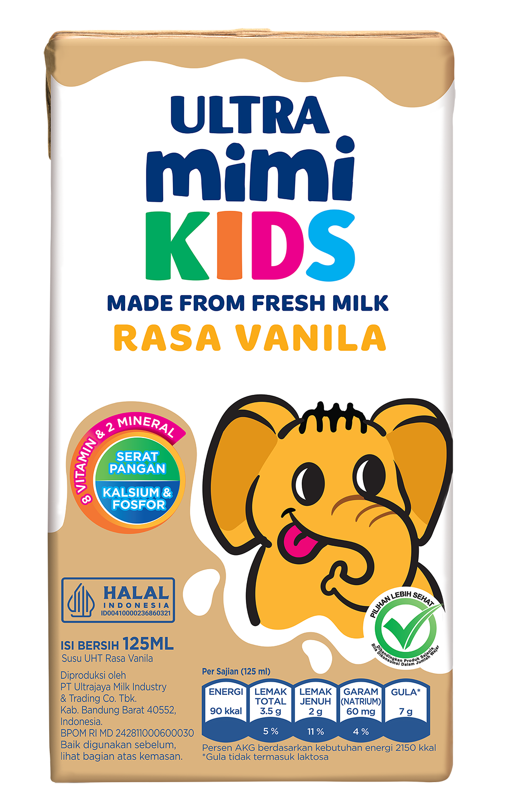 Ultra Mimi Vanilla adalah susu UHT khusus anak dengan rasa vanilla yang lembut dan creamy, disukai oleh anak-anak. Mengandung kalsium, vitamin A, D, dan B kompleks untuk mendukung pertumbuhan tulang, menjaga energi, serta menunjang aktivitas harian si kecil. Dikemas dalam ukuran mini yang praktis, mudah dibawa, dan cocok untuk bekal sekolah maupun konsumsi harian. Diproses dengan teknologi UHT sehingga higienis, aman, dan tahan lama tanpa bahan pengawet.